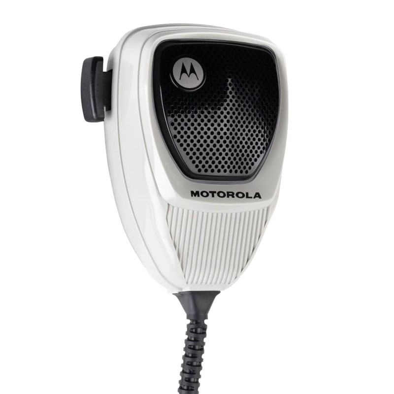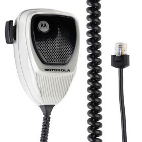 This heavy-duty palm microphone with a 10.5-foot coil cord is large enough to be used with gloves. It can be used with AVA/SVA console kits that allow the use of the portable radio in a mobile application.
